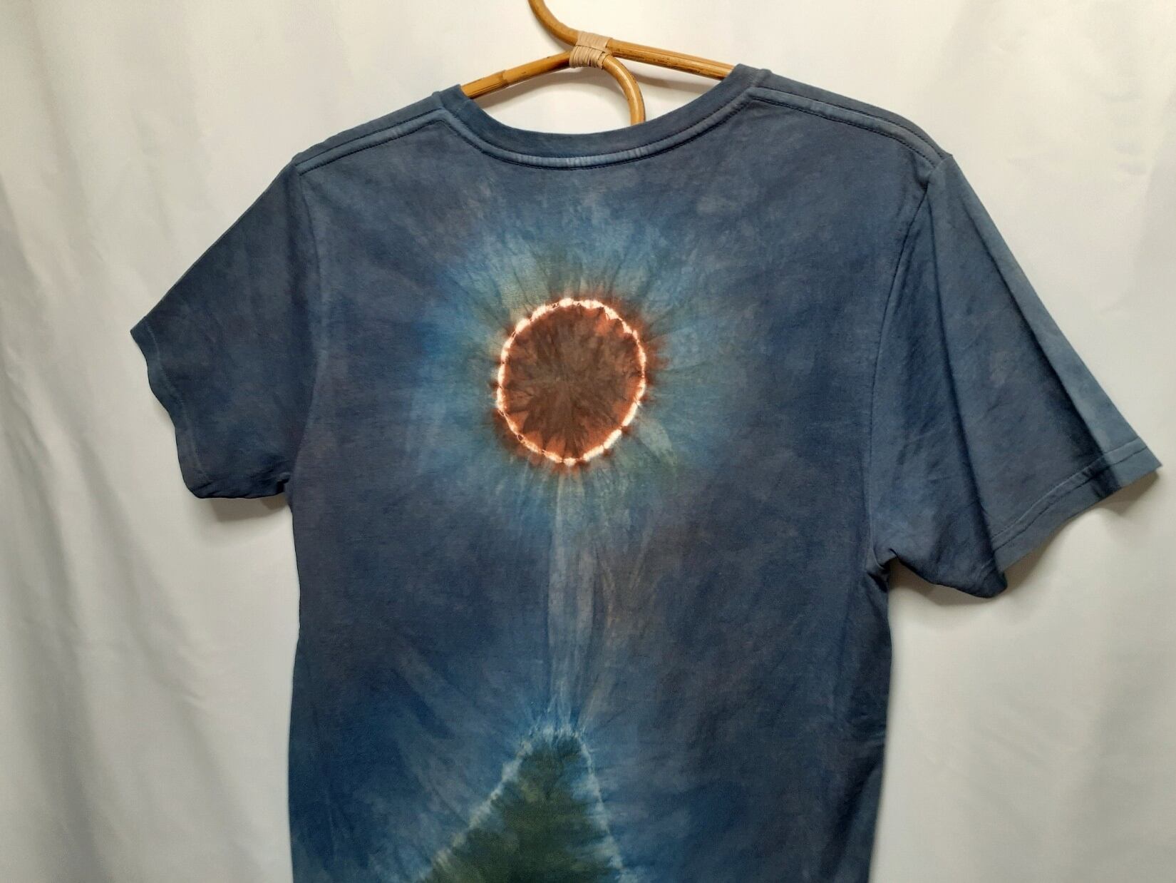 静かな月と山の手染めTシャツ(藍染&ベンガラ染)