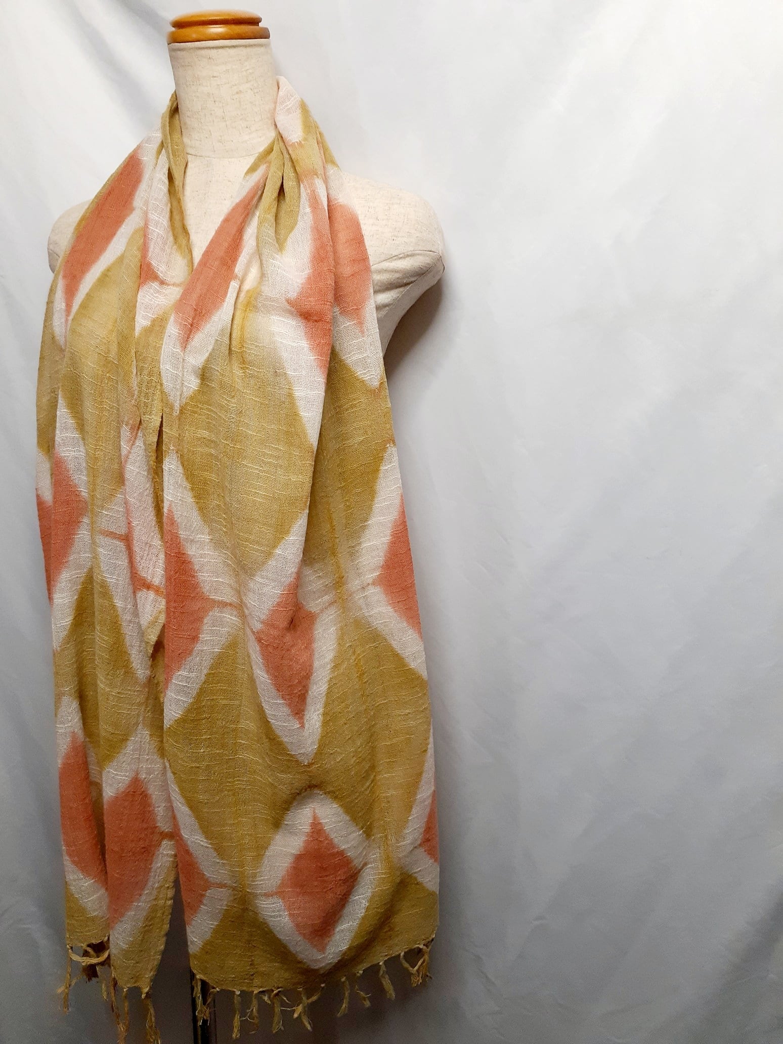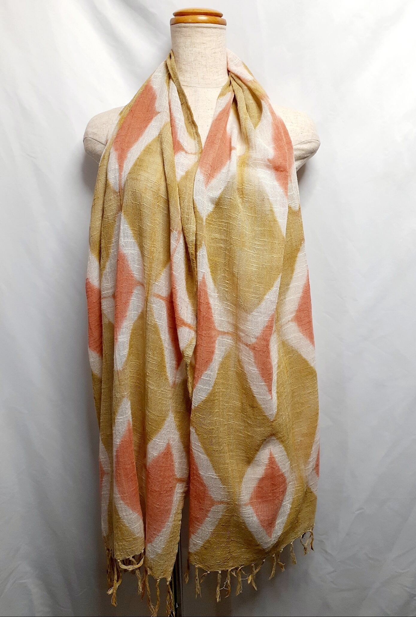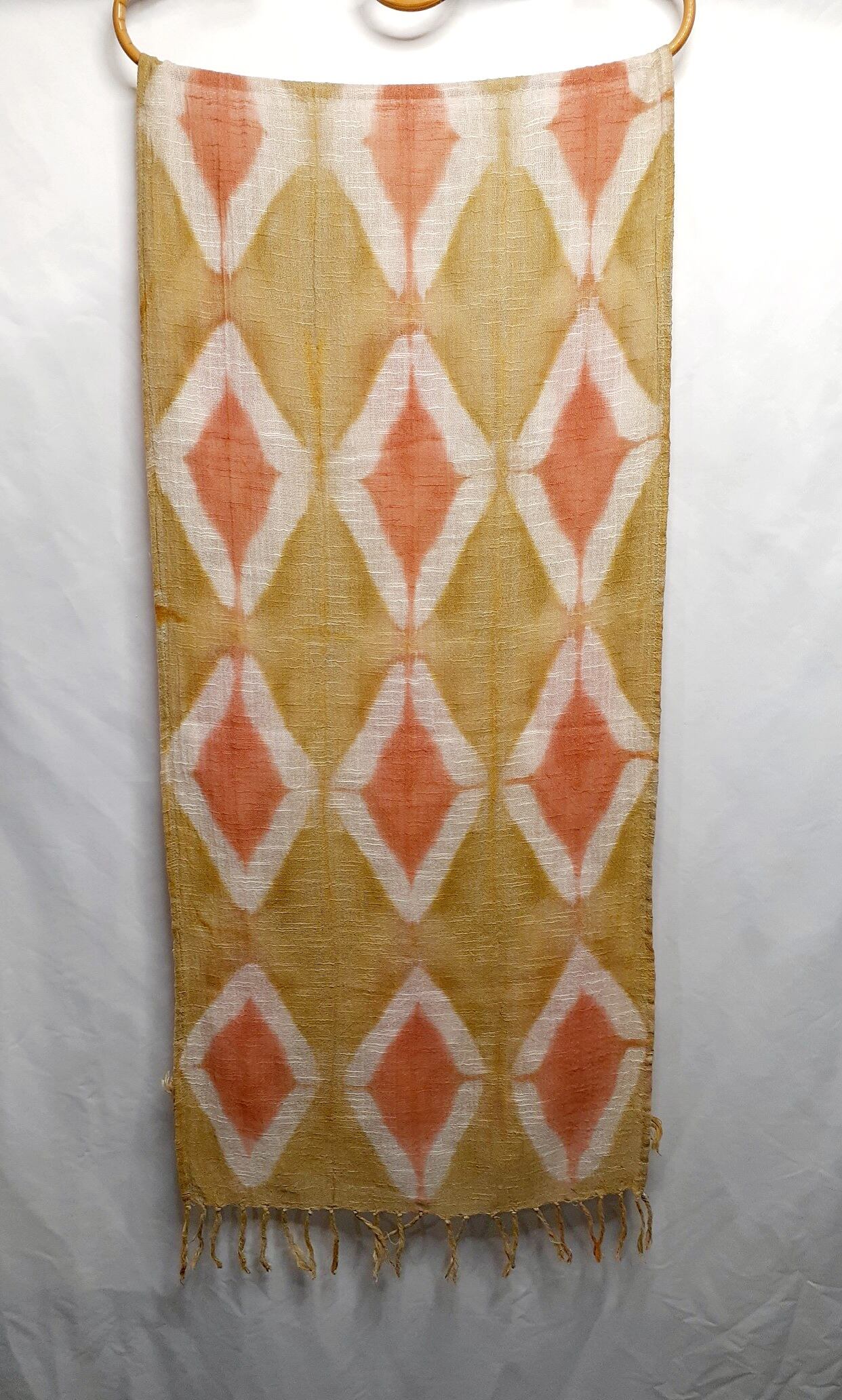 手染め・アーガイル柄のストール(ベンガラ染め)