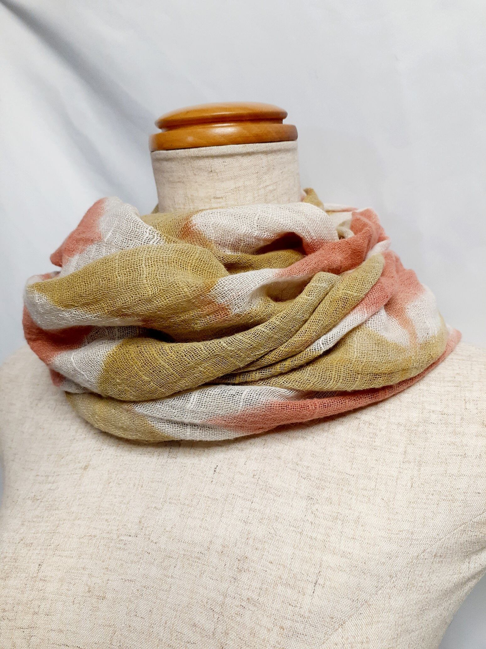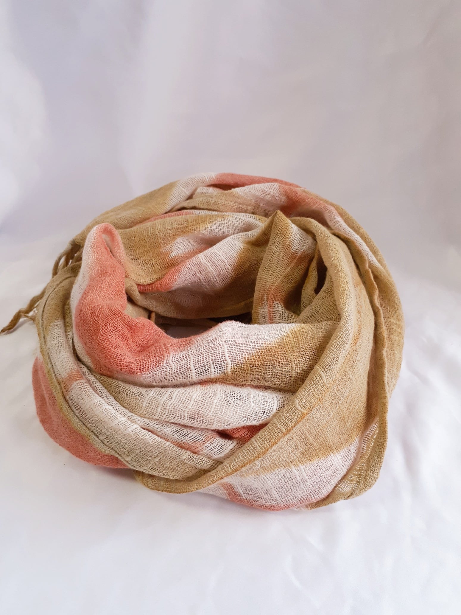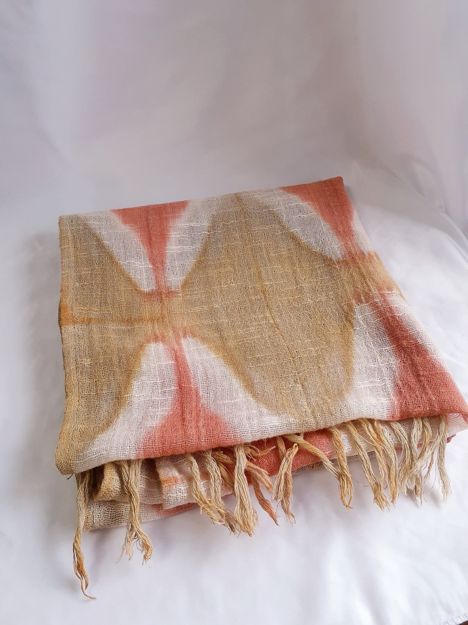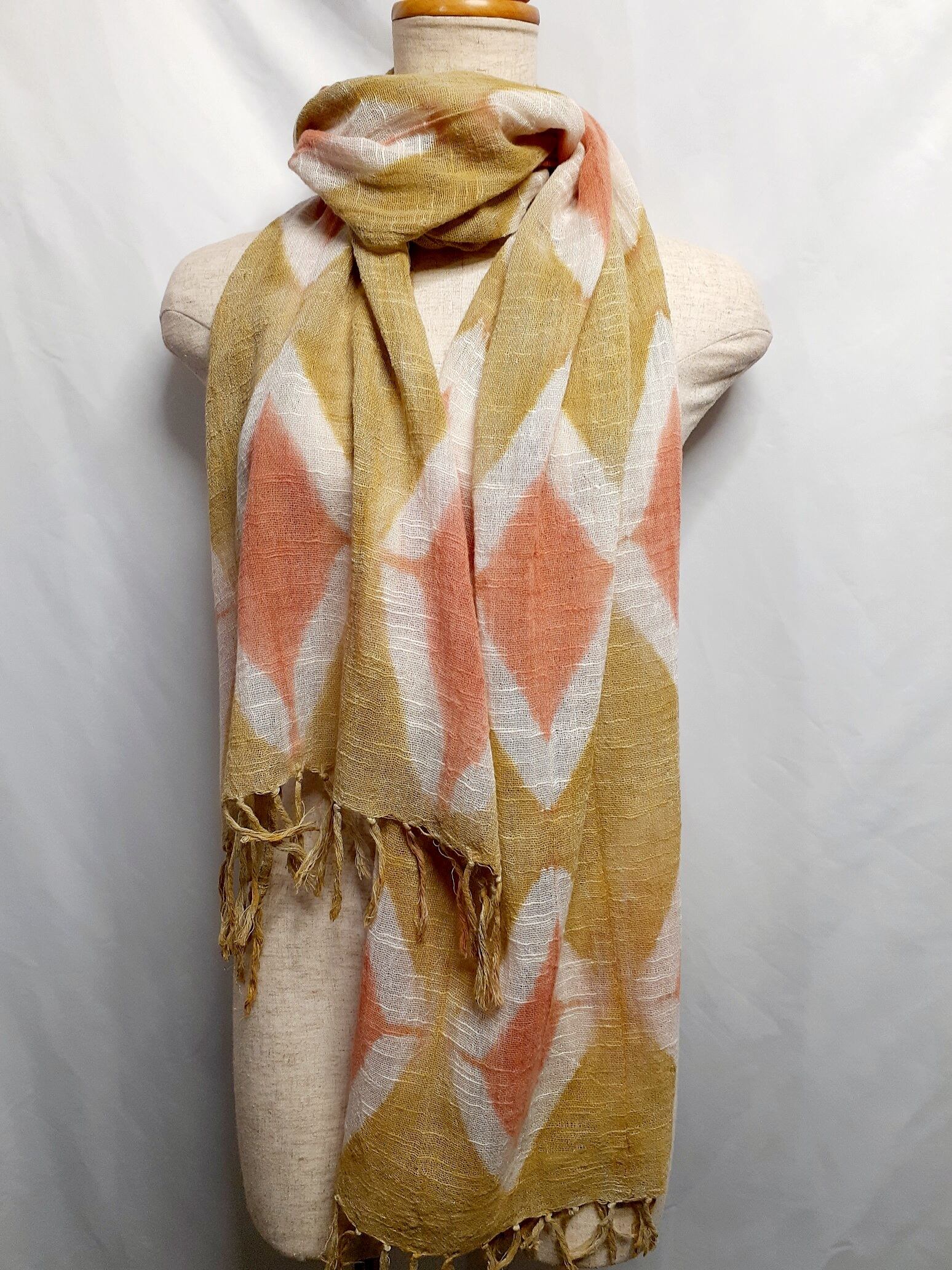手染め・アーガイル柄のストール(ベンガラ染め)