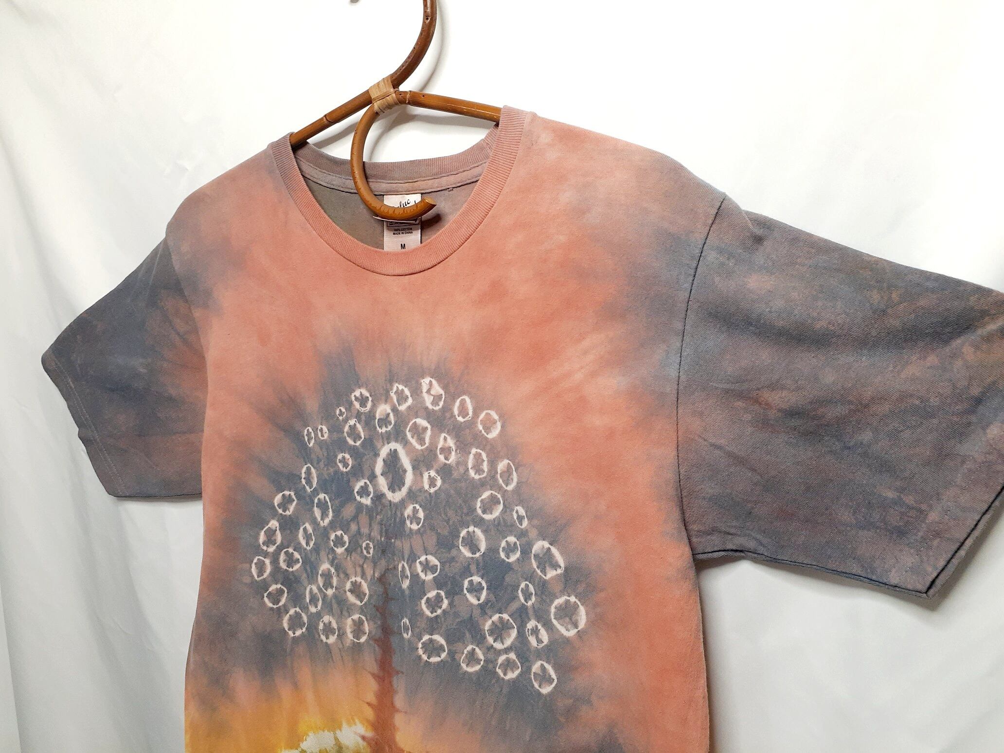 月と森の手染めのTシャツ(藍染・ベンガラ染め)