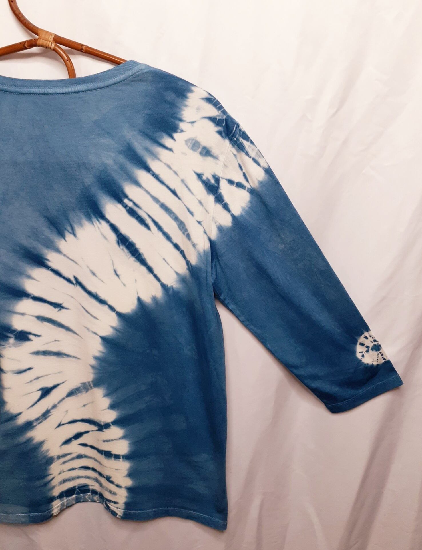こちらの七分袖Tシャツは最初に「藍染」を。