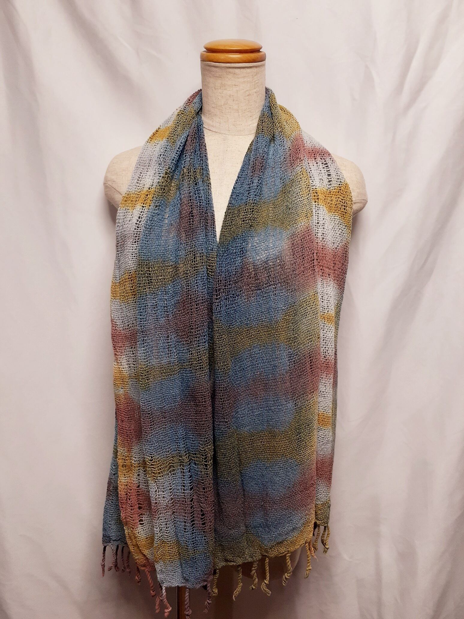 手染め・ざっくりコットンストール(藍染×ベンガラ染め)