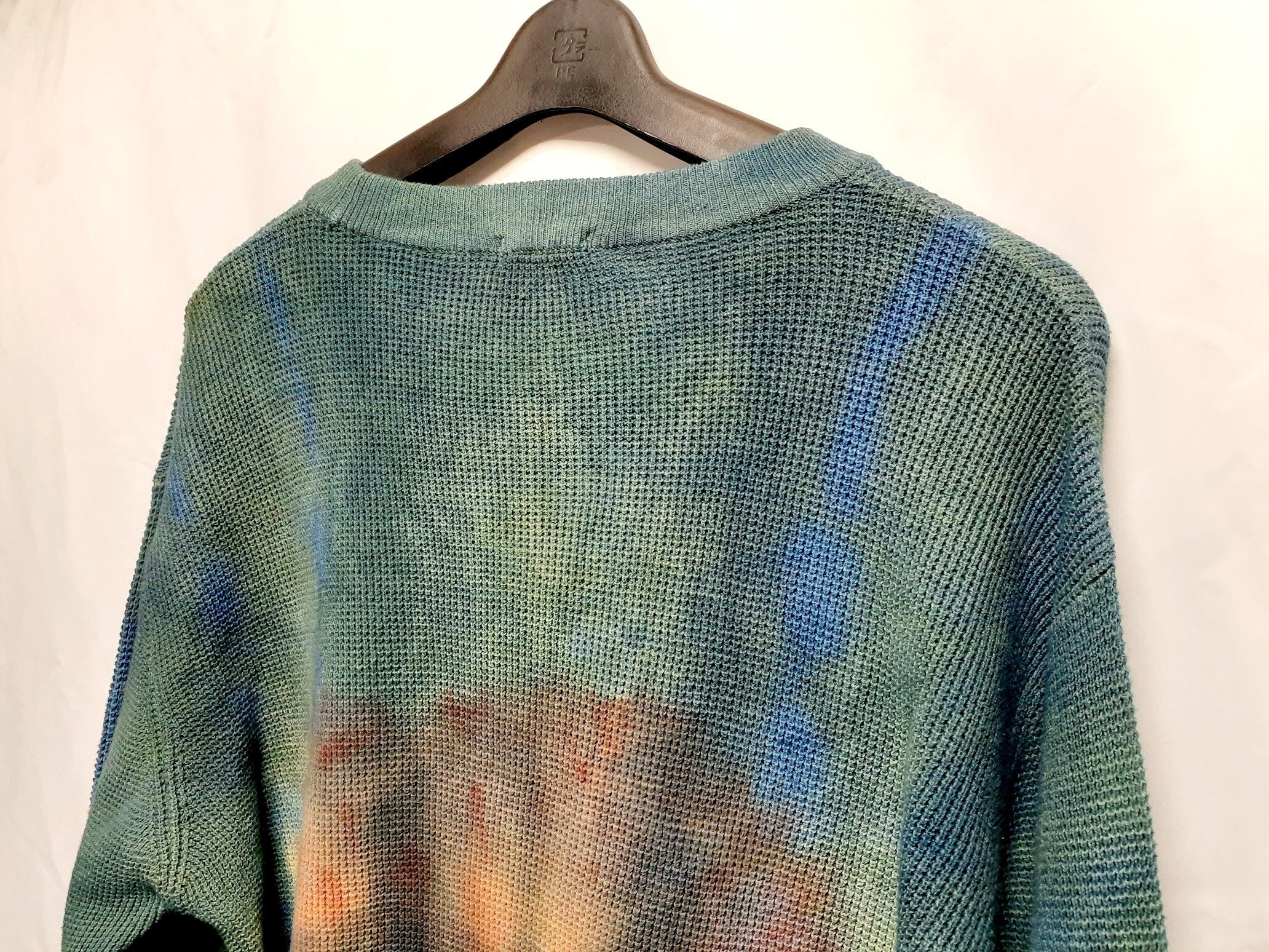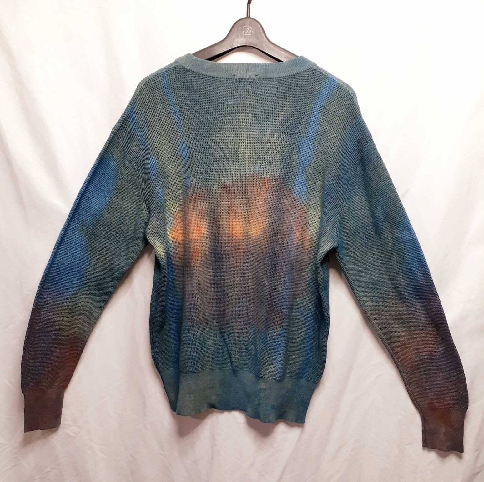 ザックリしたコットンセーターに藍染めとベンガラ染めを施し