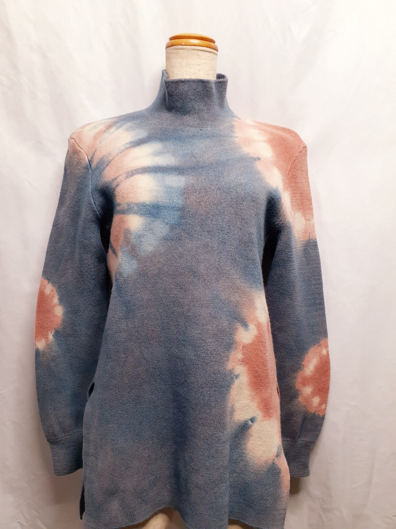 厚めでしっかりしたセーターに藍染を全体的に施し、