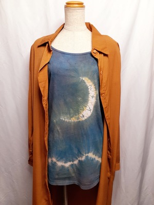 静かに輝く月と山・手染めのチュニック(藍染・ベンガラ染め)