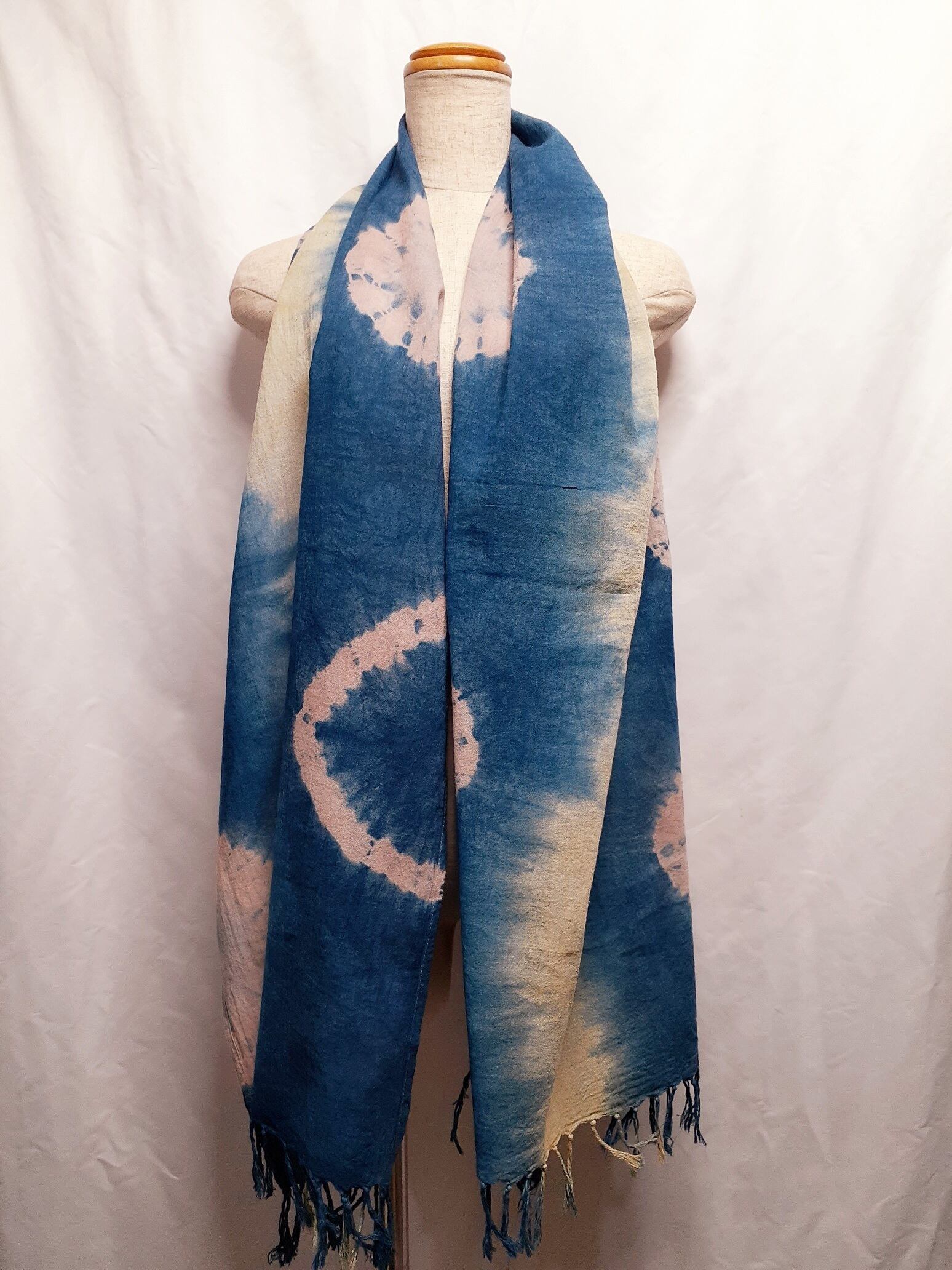 藍染とベンガラ染めで染め上げたコットン100%のストールです。