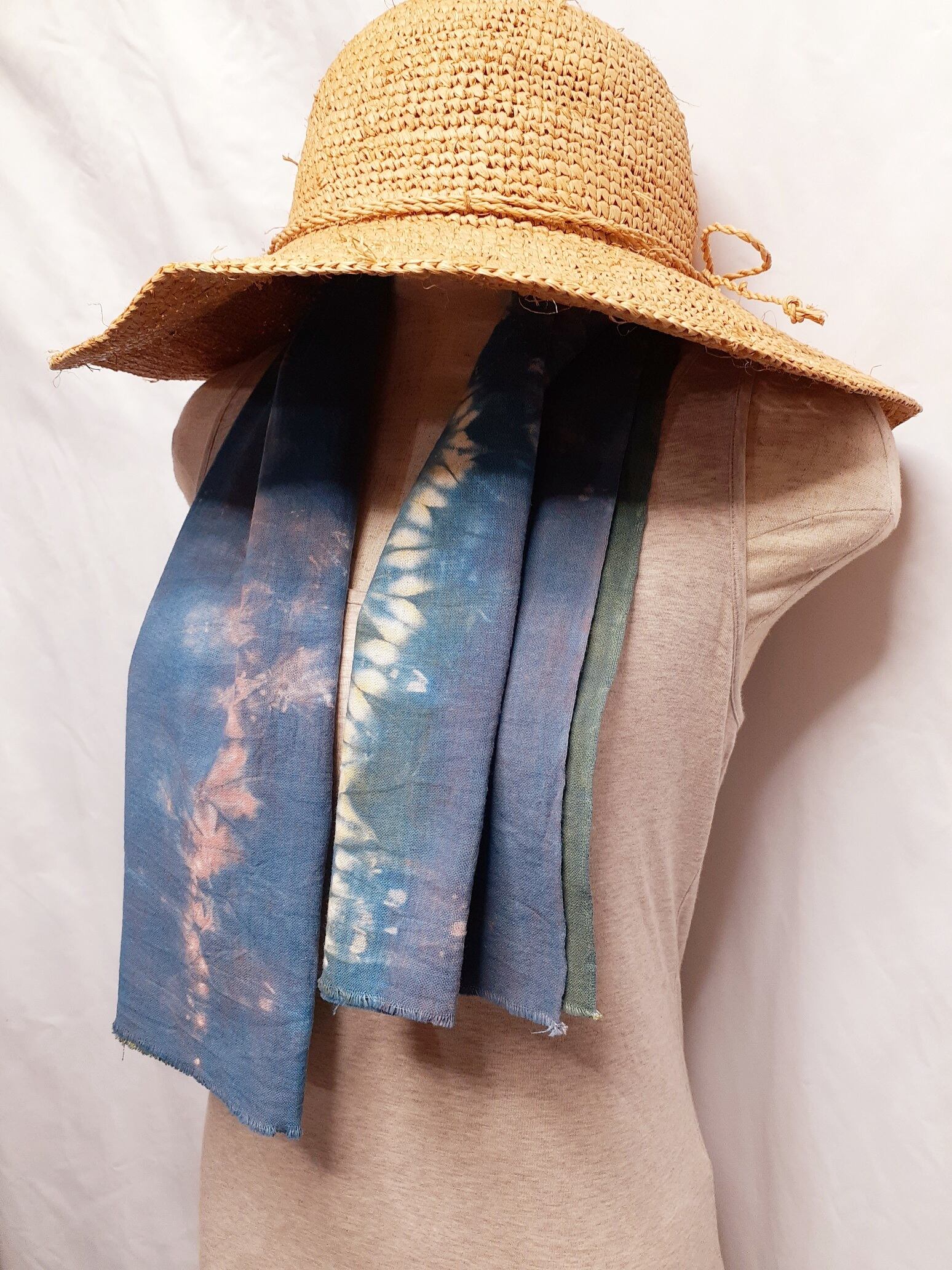 手染めの手ぬぐい(藍染&ベンガラ染め)