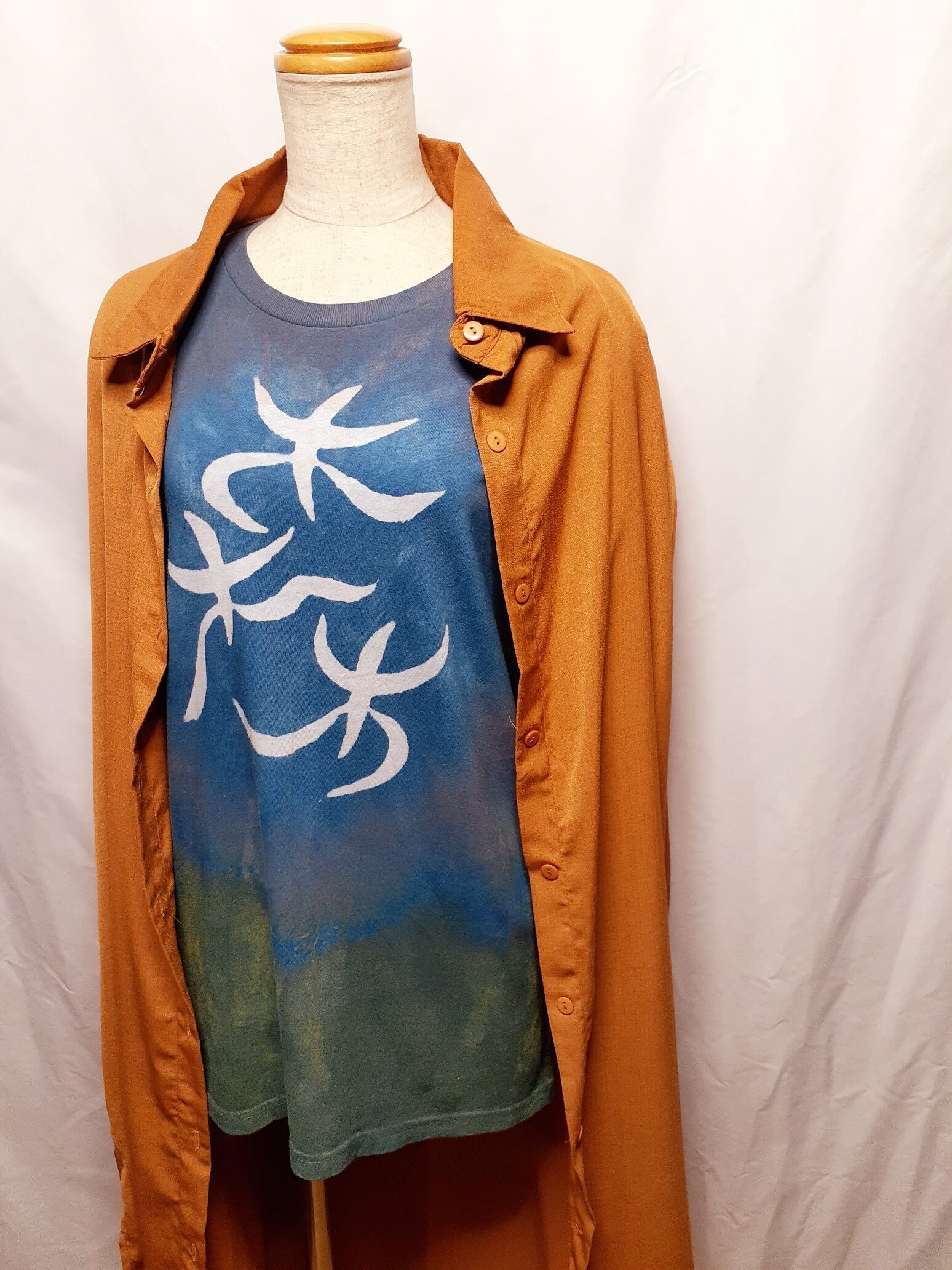 商品名:手書き&藍染&ベンガラ染めTシャツ