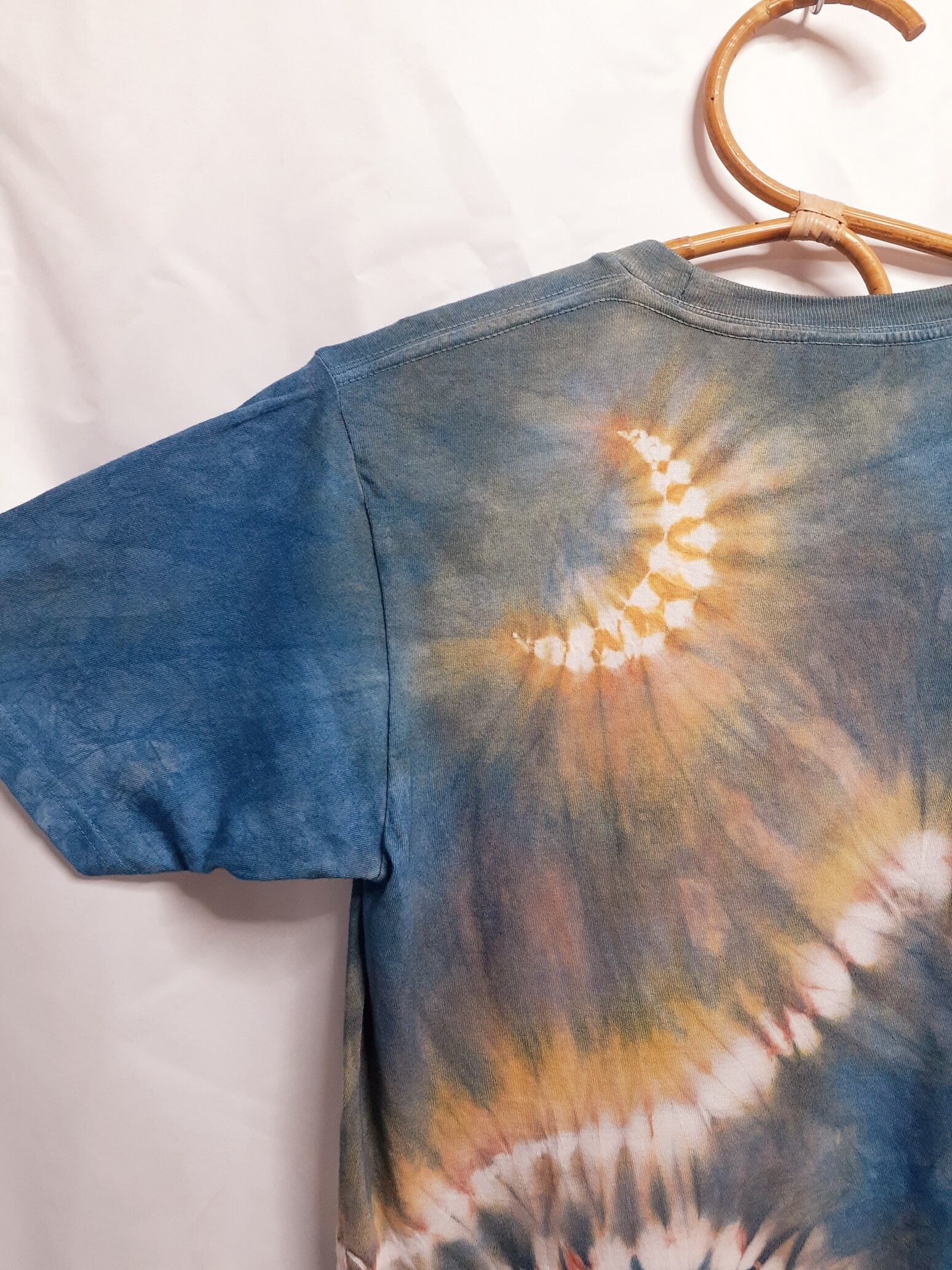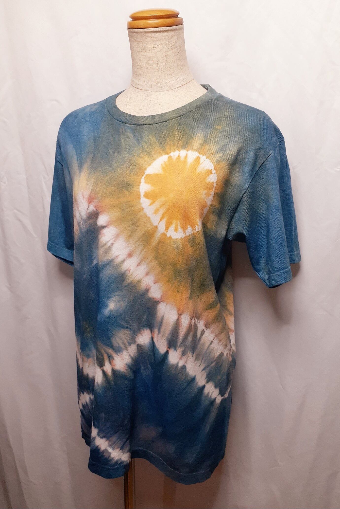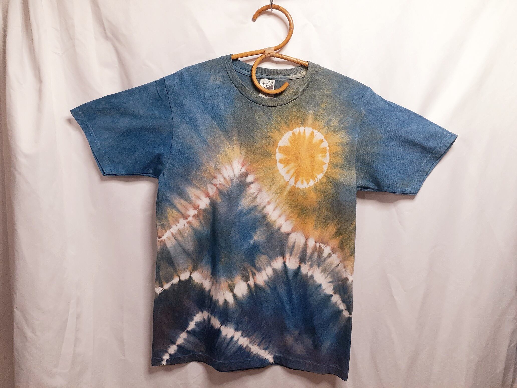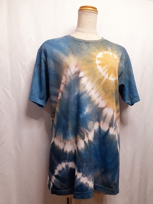 太陽と月と山の手染めTシャツ・兼用Mサイズ(藍染&ベンガラ染め)