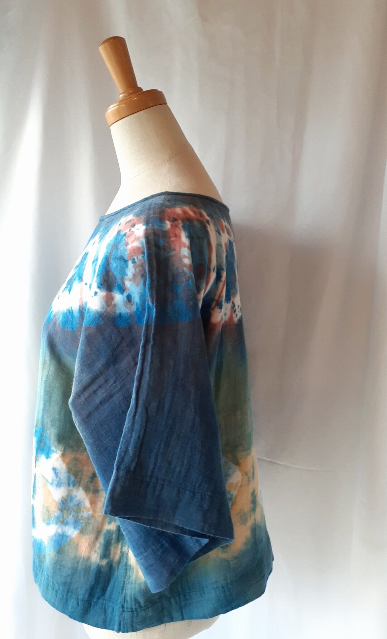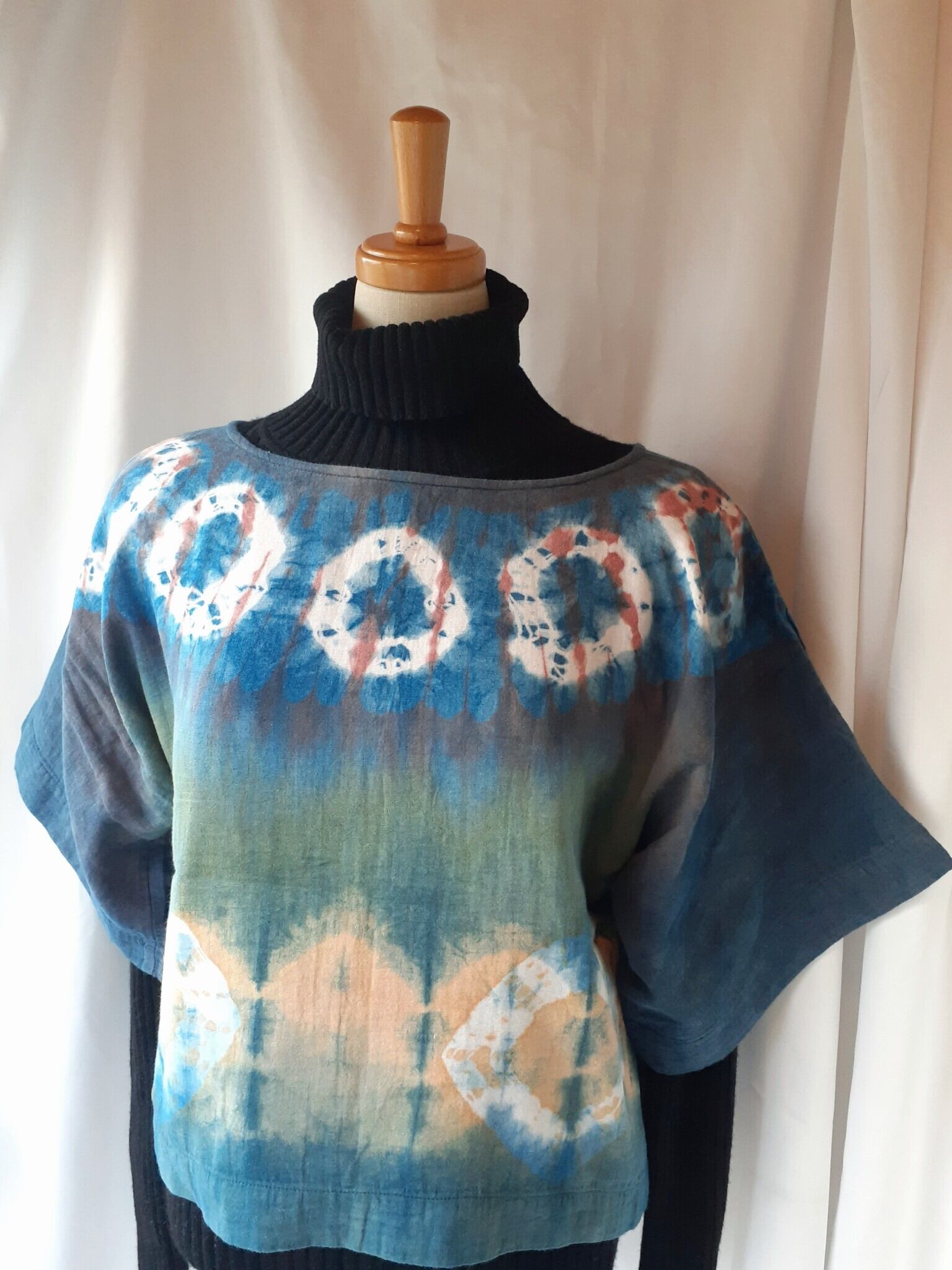 手染め&縫製・オリジナルのトップス(藍染&ベンガラ染め)